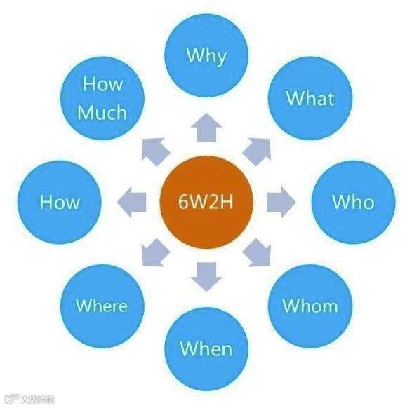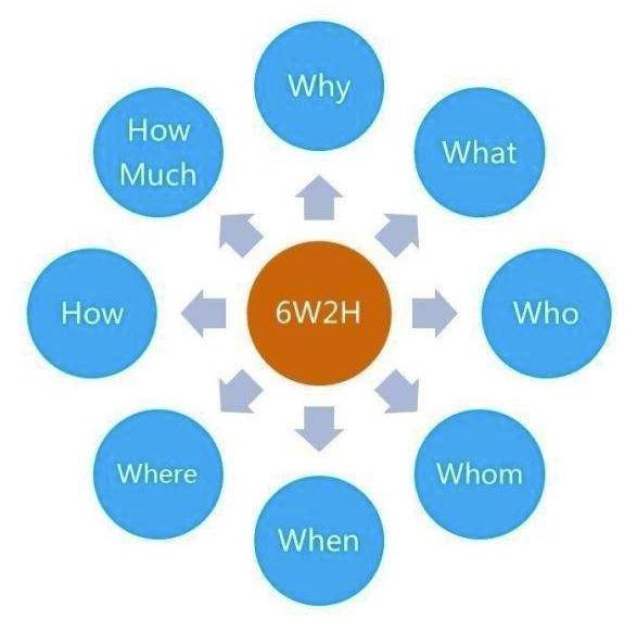 意义:做任何工作都应该从6W2H来思考,这有助于我们的思路的条理化,杜绝盲目性。我们的汇报也应该用6W2H,能节约写报告及看报告的时间。