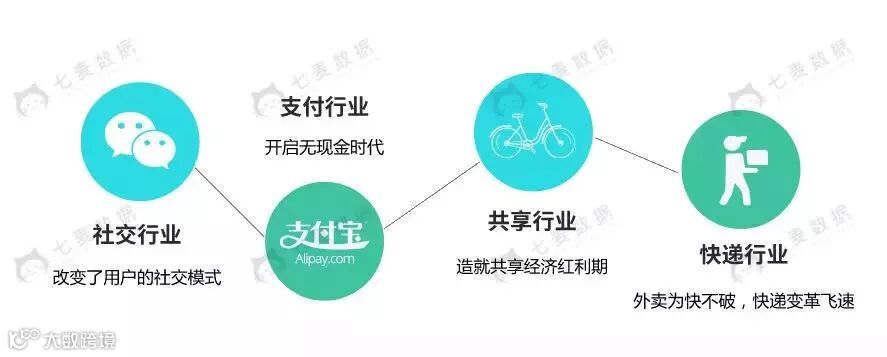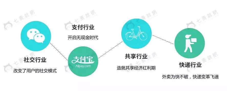 有了互联网这个契机,年轻一代们给祖宗长了脸,在世界范围的对手面前成功“扳回一局”,于是有了新四大发明的概念:微信(社交行业)、支付宝(支付行业)、共享单车(共享行业)、外卖(快递物流行业)。