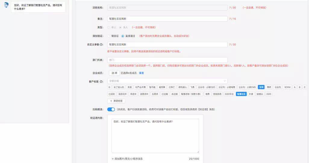 当客户通过企业微信渠道活码扫码之后,会被分配添加给活码对应的某个员工,并按照来源渠道自动标签,好友添加成功后客户那边则会收到提前预设好的欢迎语,而员工这边则会收到新客户通过某渠道添加自己好友的通知,方便进行服务或产品推销。