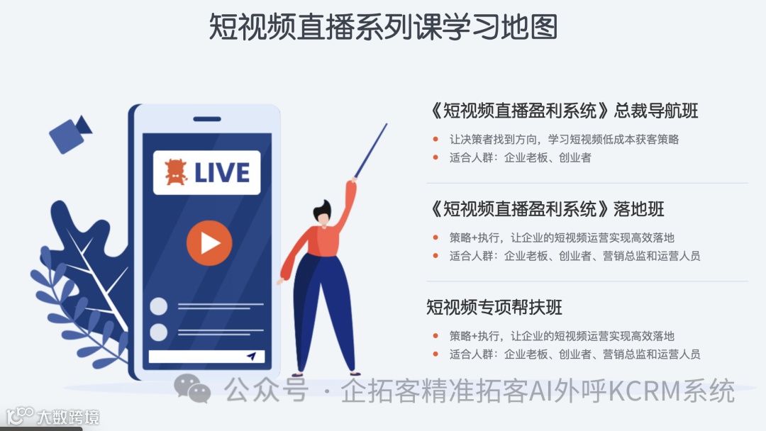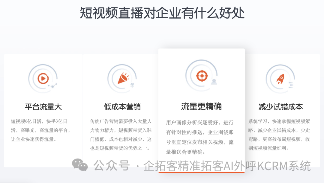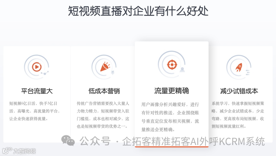 企拓客源自厦门服务全国,短视频流量暴增的新时代,大数据和AI赋能企业,获客迎来了全新的模式。企拓客从短视频询盘获客全面升级为B2B和B2C精准拓客赋能企业实现AI自动化销售系统。包括精准拓客、AI呼叫和CRM系统。