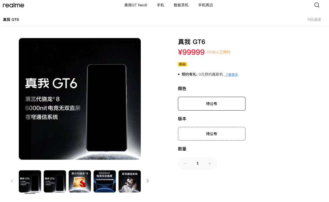 另一边真我GT6虽然暂未公布发布时间,但今日已经上架官网和各大电商平台开启预约。