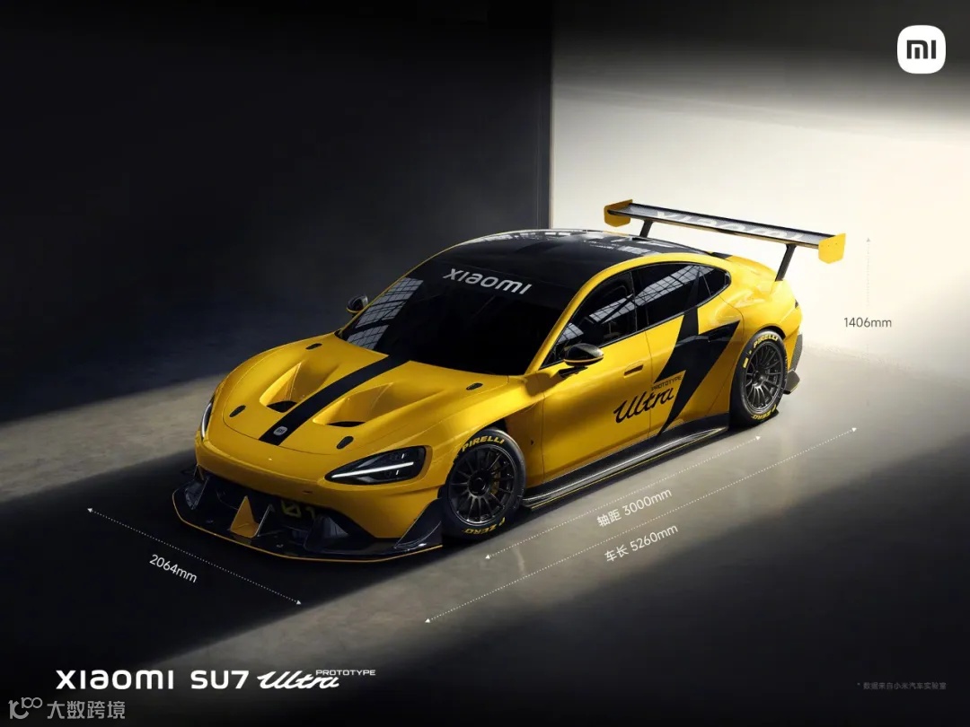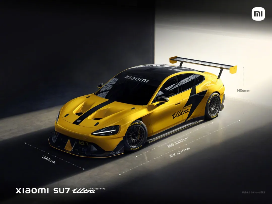 车身设计上,小米SU7 Ultra原型车采用黄色涂装,「全碳」设计,车身覆盖件100%使用碳纤维材料,配备固定式赛用大尾翼、超大尺寸尾部扩散器等赛车配置,最大下压力达到2145kg,大于车重。而雷军称量产版因为成本原因不会采用全碳设计,所以预计最终SU7 Ultra量产版的外观应该也会发生变化,有对这车感兴趣的吗?