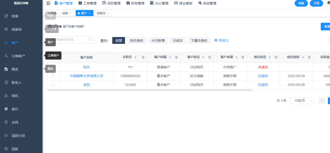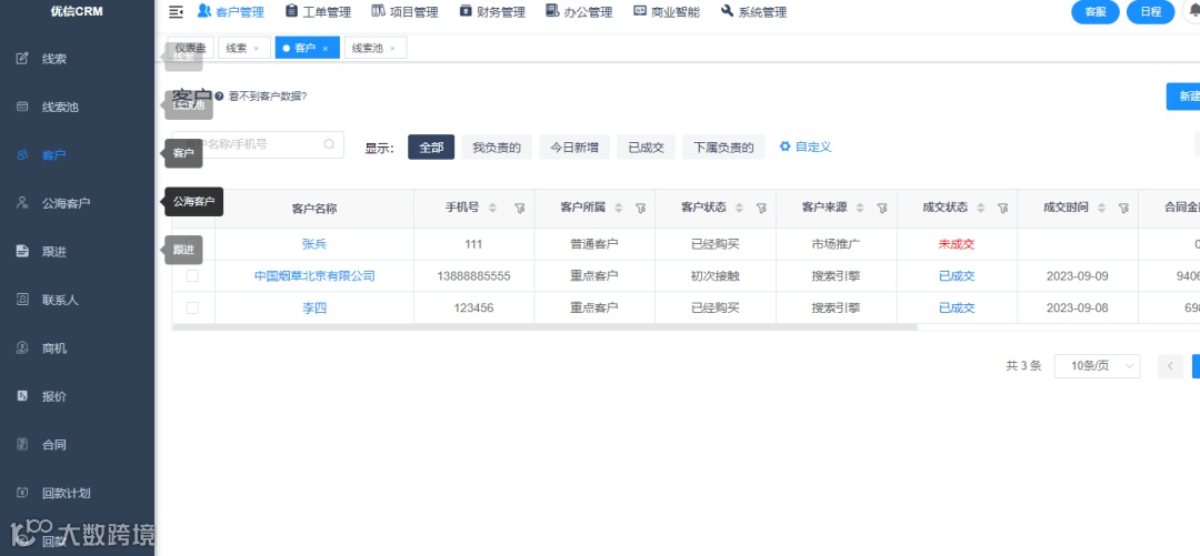 今天给大家推荐一款已经进行评测了的CRM销售管理系统,销售圈基本都在用这款CRM软件,不管是个人,还是企业,之前我们总有老套的表格管理客户,客户数据不集中,并且无法统计销售的完成量。那么CRM系统哪个好用呢?优信CRM推荐。