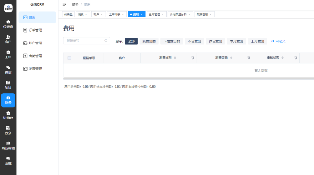 财务管理:订单管理,账户管理,出纳管理,发票管理。