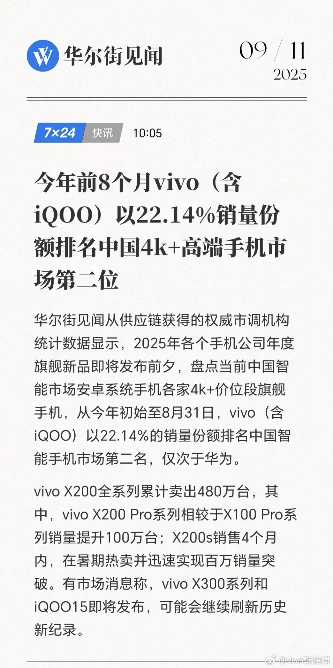 目标是打造业界最强的小屏标准版。并透露,vivo X200 Pro系列
