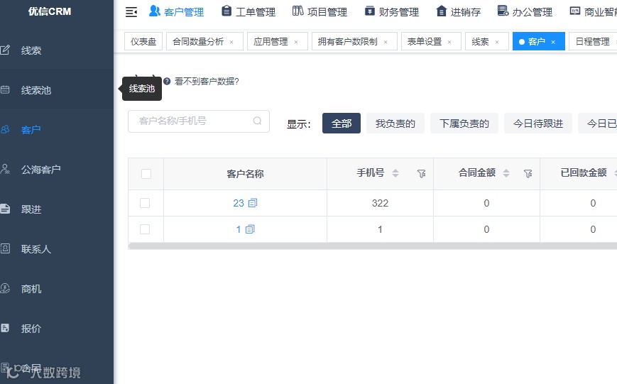 CRM客户管理系统是比较灵活的,我们可以通过各种渠道来获取客户资源,比如推广,自媒体,朋友介绍,展会等等,这就是客户资源的来源,也就是我们说的线索。