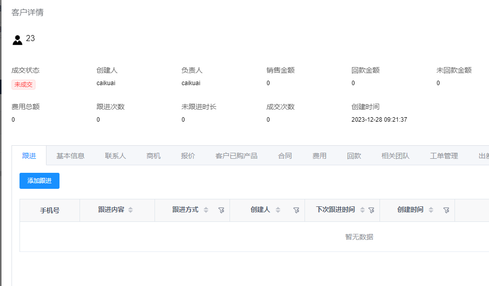 有了线索之后,就是跟进,跟进中要记录每次的跟进记录,后期翻阅可以随时查看。