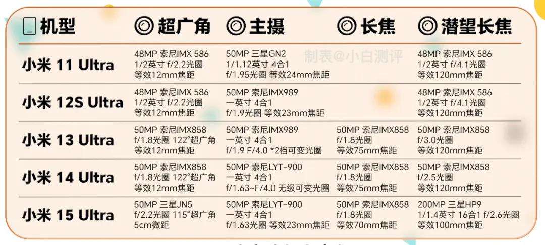 上图为小米近5代Ultra后置影像规格