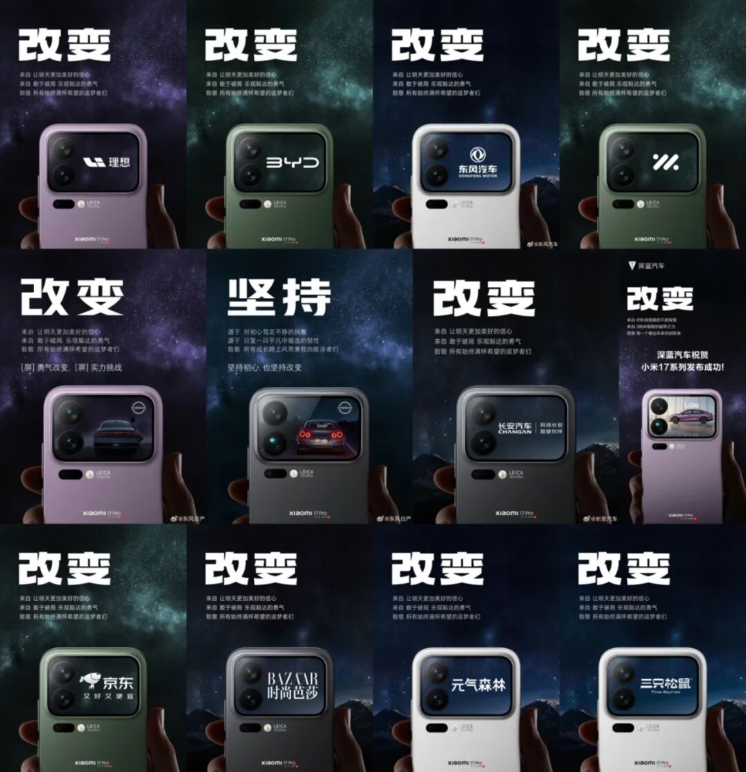 不完整汇总,理想、比亚迪、东风汽车、深蓝汽车、智己汽车、东风日产、长安汽车等车企联动小米17 Pro背屏预热,还有京东、时尚芭莎、元气森林、三只松鼠等等。