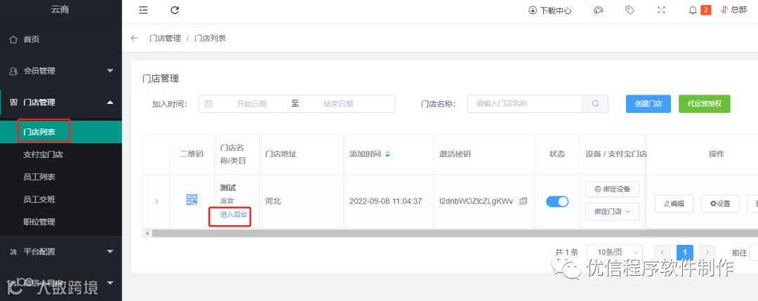 第五步:审核通过后,找到左侧门店管理-门店列表,进入门店。