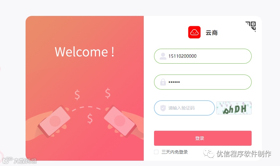 第二步:填写账号和密码,登录账号,进入商家管理小程序后台。