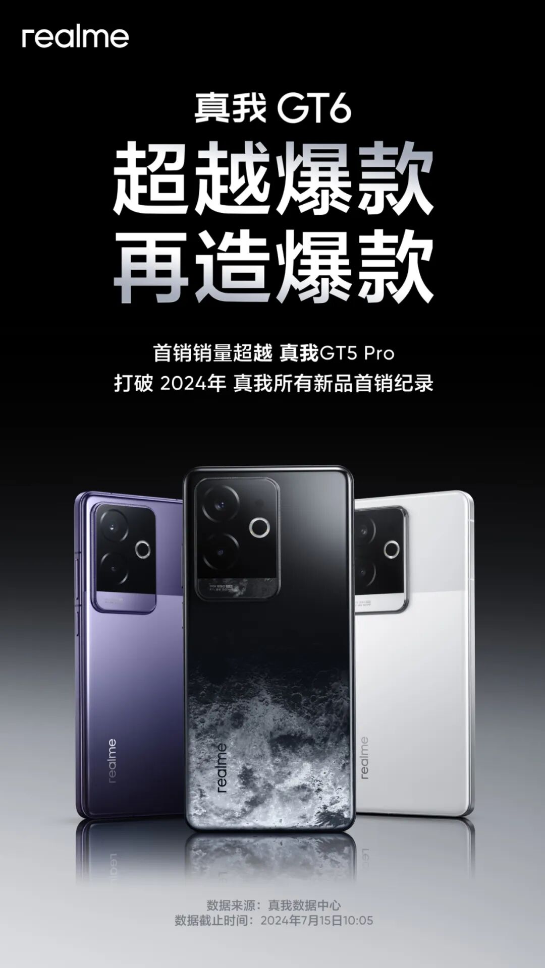 官方公布的首销战报显示:真我GT6首销销量超越真我GT5 Pro,打破2024年真我所有新品首销纪录。虽然未公布具体销量数字,但作为近期发布的三台骁龙8 Gen3新机中价格最低的,综合性价比还是不错的。