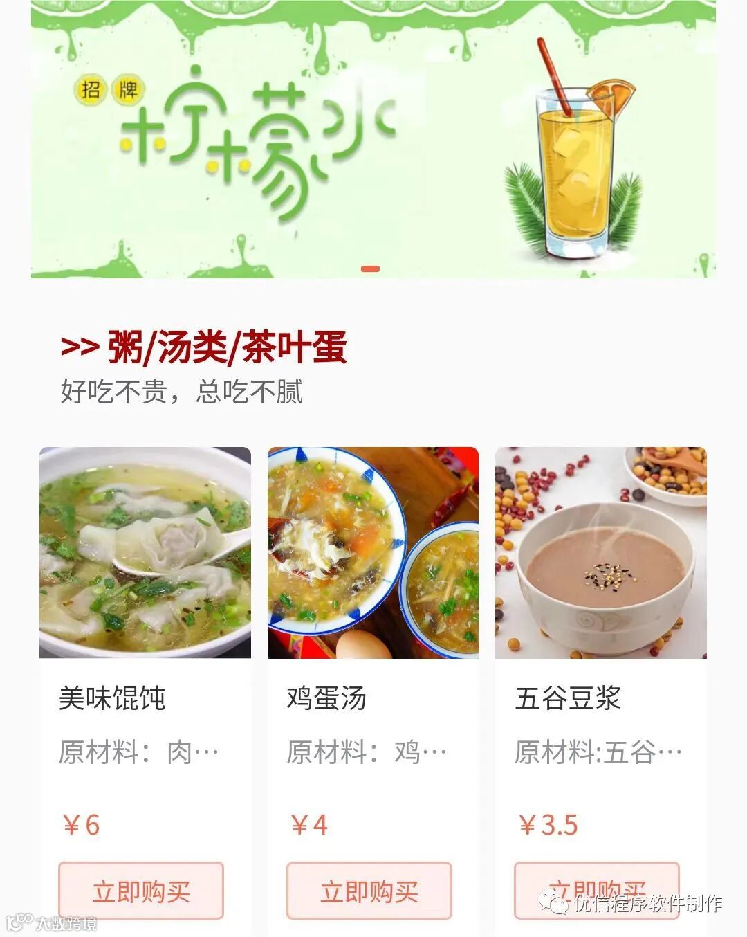 上传部分菜品,可以看到小程序的前台展示,保存好装修,商品,都会展示出来。