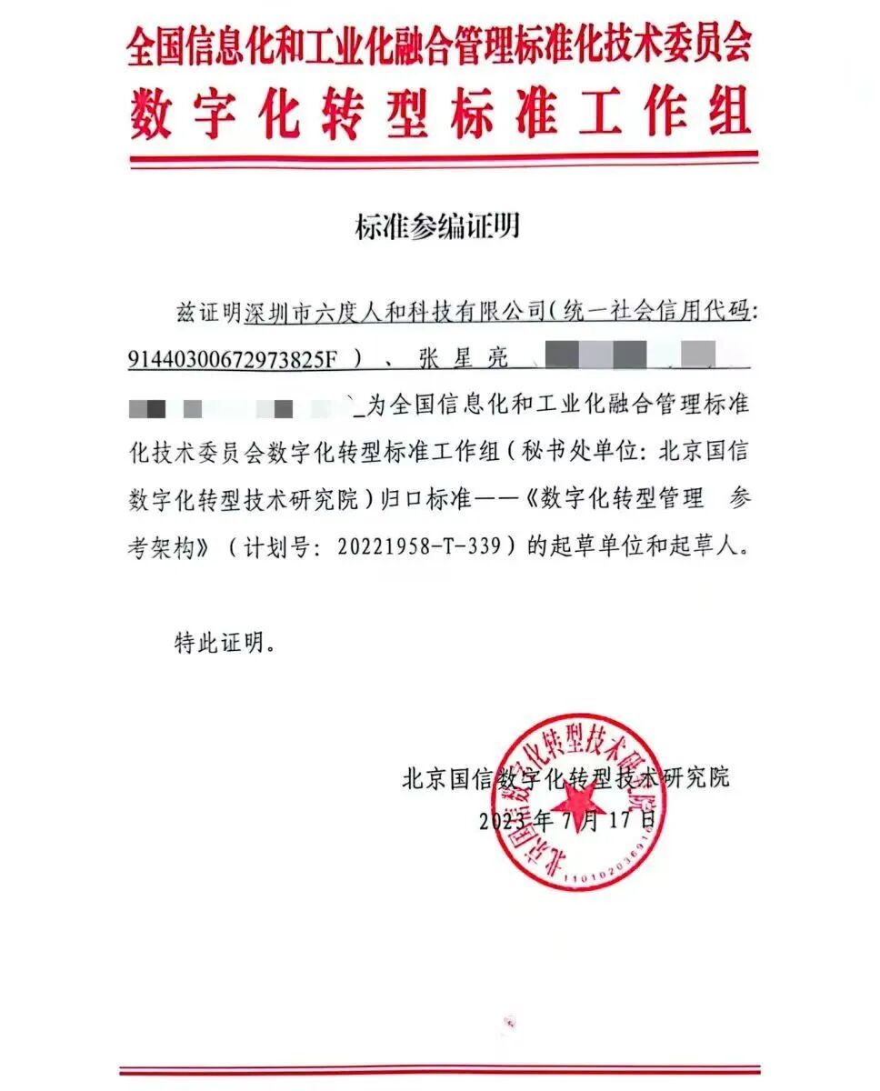 近日,国家市场监督管理总局与国家标准化管理委员会联合起草了《数字化转型管理参考架构》。该架构旨在为企业提供一套系统化、标准化的数字化转型框架体系,帮助企业把握数字化发展机遇,实现可持续的进阶发展。作为国内领先的CRM服务商,六度人和(EC)凭借其在数字化领域的深厚积累,荣幸成为该国家级标准的起草单位之一。