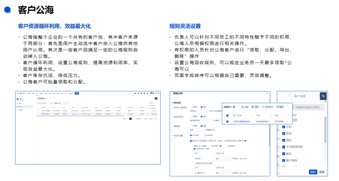 客户循环利用,设置公海规则,提高资源利用率,实现效益最大化。