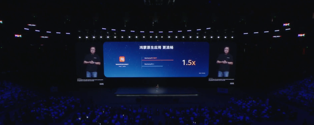 如上图所见,华为终端BG软件部总裁龚体在大会上表示:纯血鸿蒙将设备整机性能比HarmonyOS 4提升30%,“甚至超过了芯片工艺制程升级两代所带来的整机性能提升”,并称华为的目标是:“从系统架构和生态性能,通过极简架构,极致并行,让整机的性能(通过OTA)每年再提升20-30%,超越整个行业芯片制程的进步速度”,“这是我们的目标也是我们的承诺”这个数据可以说是非常恐怖了。