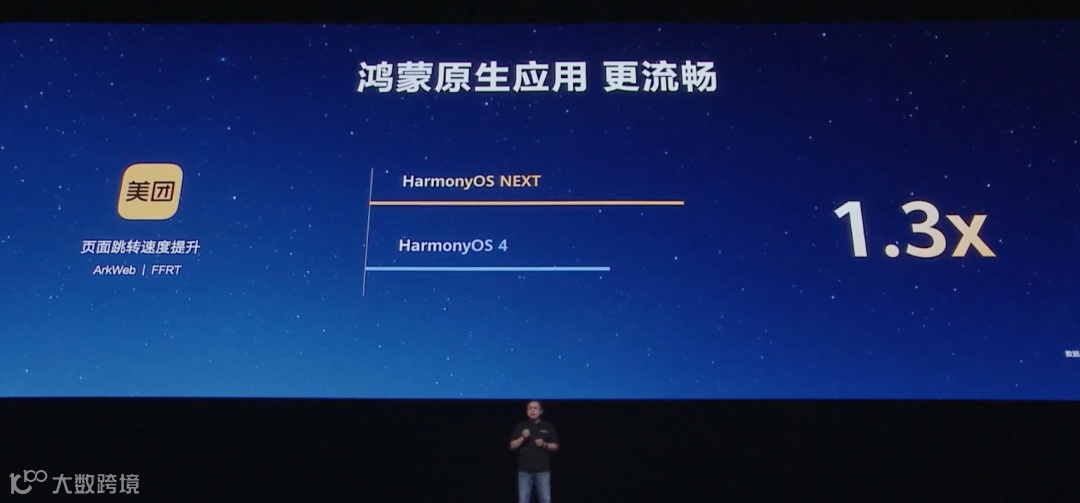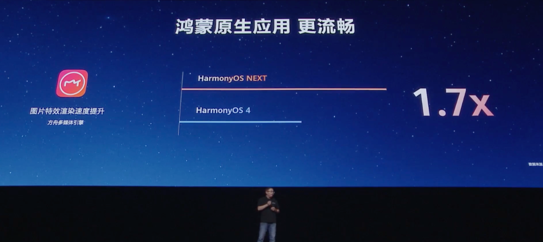 作为补充,在大会上,华为终端BG软件部总裁龚还列举了鸿蒙原生应用更流畅的一些数据,比如同场景下HarmonyOS NEXT相比HarmonyOS 4图库滑动响应速度提升1.4倍、微博首页滑动速度提升1.3倍、高德地图滑动响应速度提升1.3倍等等。现在就等纯血鸿蒙正式版到来看实际体验了~