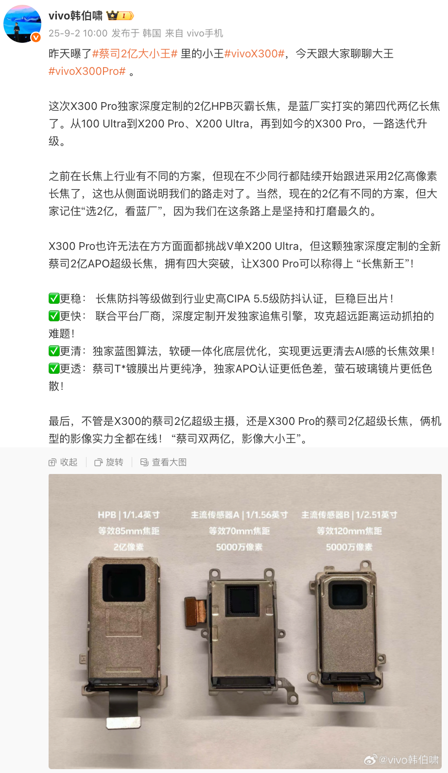 而除了全新2亿像素潜望长焦外,爆料X300 Pro背部ID则依然是居中圆形奥利奥模组,预计还将搭载LYT828 22nm 50MP 1/1.3"超高动态超大底主摄,以及一颗50MP超广角镜头,网传电池容量可能是6500mAh,整体相对轻薄,其它堆料比较猛,该上的都上了。大家还希望哪些方面能有提升?