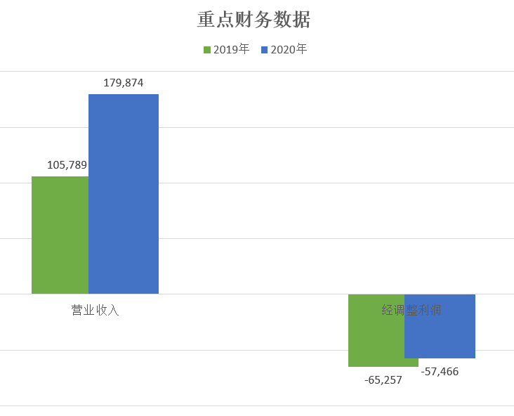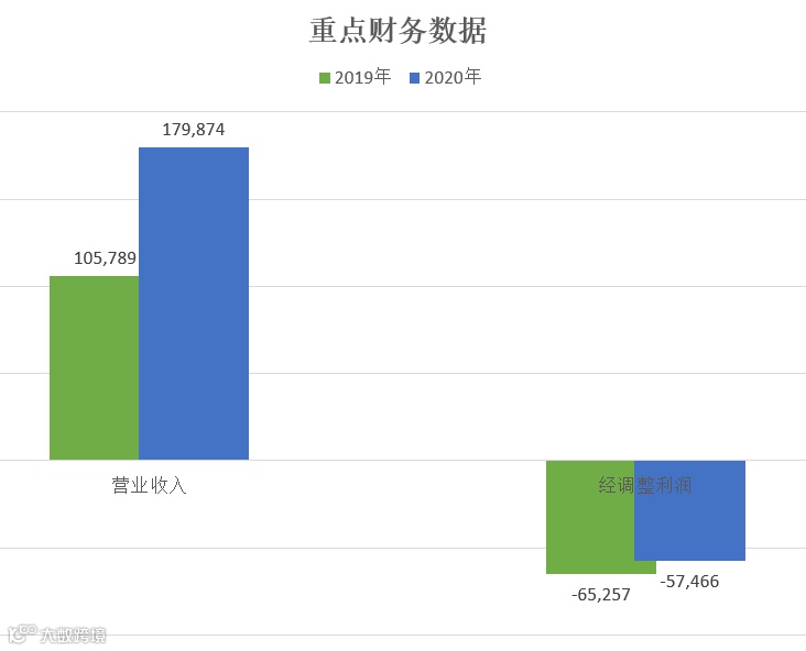2020年对比2019年,营收增长70%,这个挺猛的;而经调整利润的亏损也有所收窄