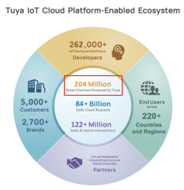 截止去年,共有2亿个产品通过涂鸦实现了物联网,同时公司是最大的IoT PaaS服务提供商