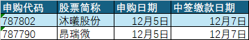 根据目前信息,下周有两只上交所科创板新股申购,都在周五,分别是【沐曦股份】申购代码787802和【昂瑞微】申购代码797790。预计沐曦股份中签收益可观,顶格打新所需日均市值仅6万元,建议积极申购。