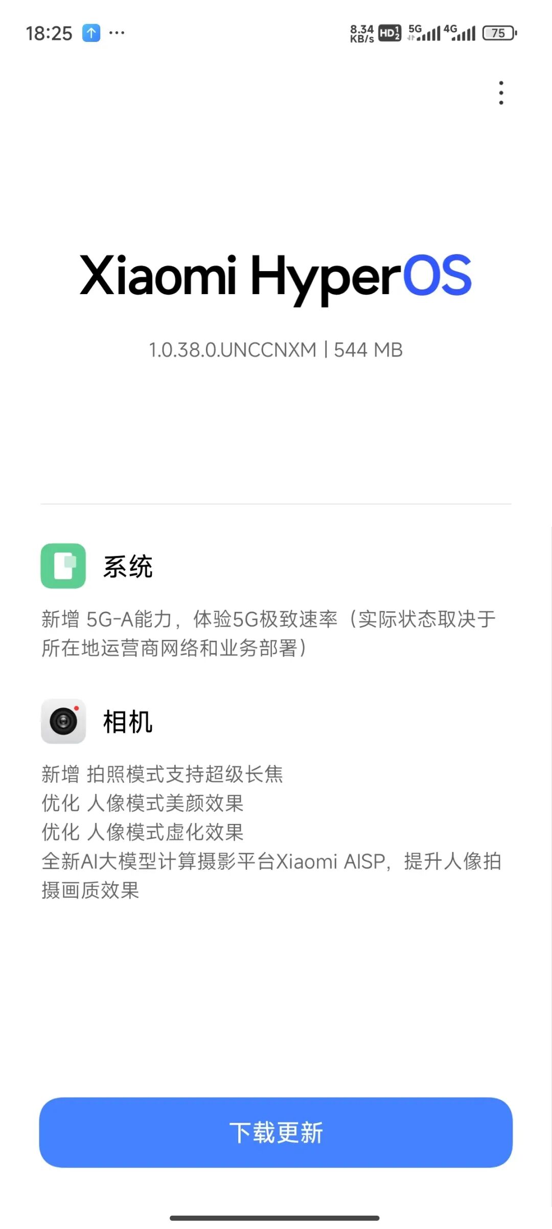 如上图所见,我们小伙伴的小米14今天收到了该版本更新,除了新增5G-A能力、体验5G极致速率外,相机也有优化,拍照模式新增支持超级长焦。