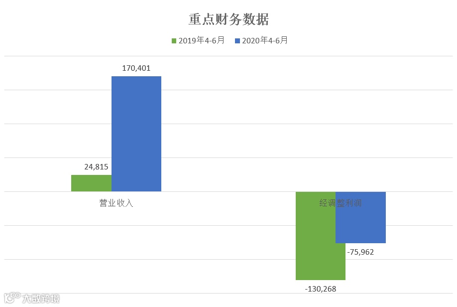 今年4-6月对比去年同期营收增长586%,经调整利润亏损有所收窄。