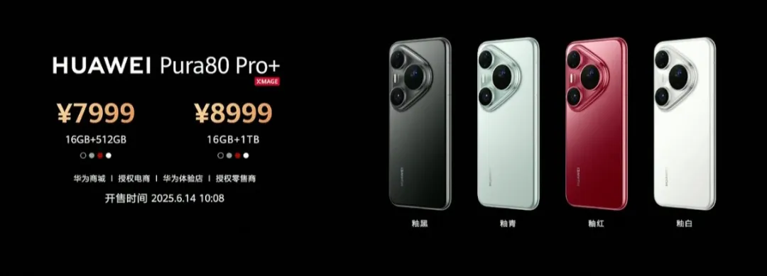 作为补充,Pura 80 Pro/Pro+主要配置为:6.8英寸1.5K 1-120Hz等深四曲屏,侧边指纹,玻璃后盖+金属中框,麒麟9020处理器,5700mAh电池,100W有线充电、80W无线充电,支持IP68、IP69、红外遥控、NFC、双频GPS、USB3.1 Gen1,后置①50MP一英寸主摄有OIS F1.6-F4.0可变光圈 RYYB(Pro+是一英寸『高动态』主摄) ②40MP超广角 F2.2 RYYB ③48MP超聚光微距长焦 F2.1 RYYB 4X光学变焦有OIS ④1.5MP红枫原色镜头,鸿蒙5.1系统。Pro+另外采用第二代玄武钢化昆仑玻璃,支持天通卫星通信。大家身边有入手的吗?