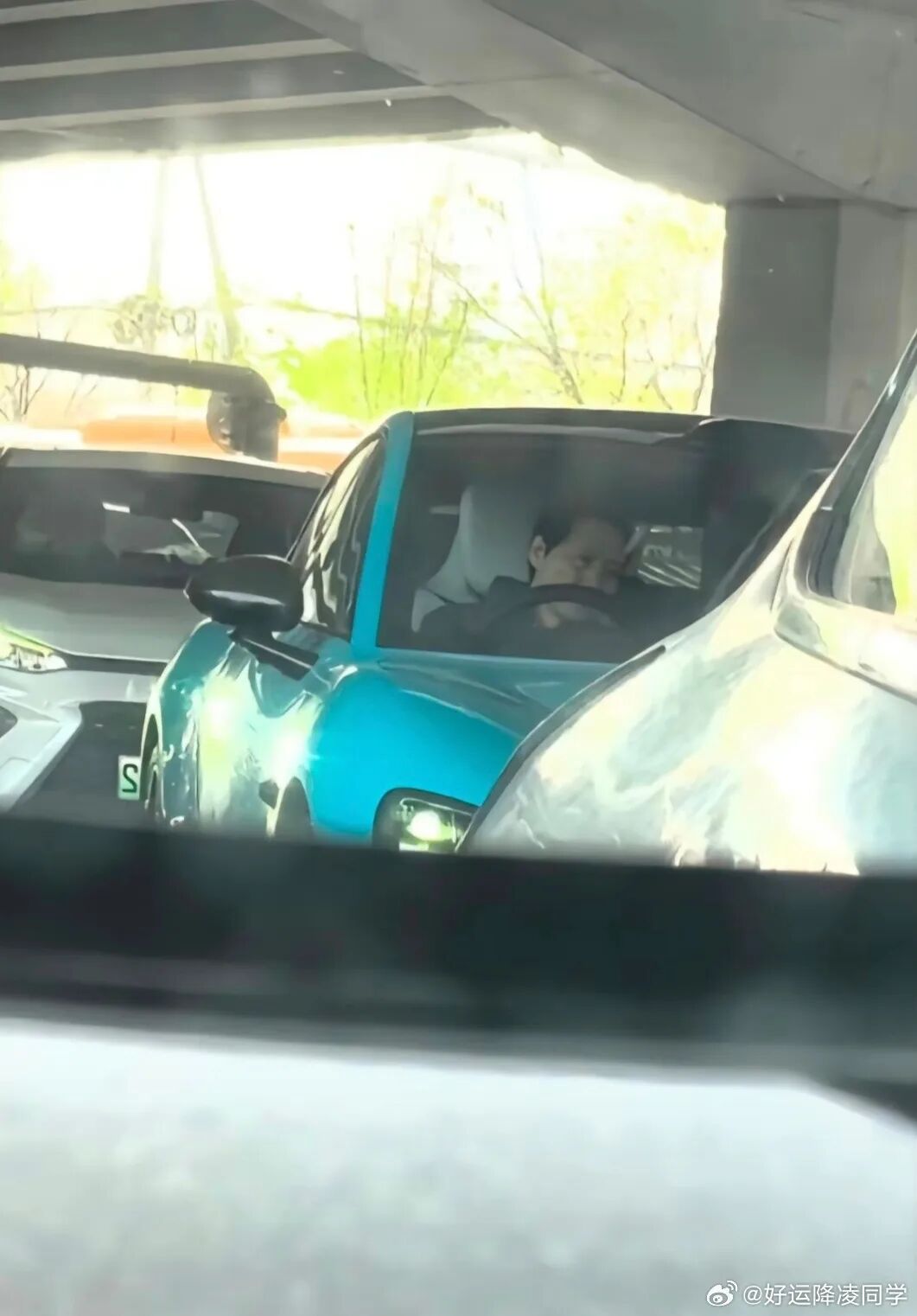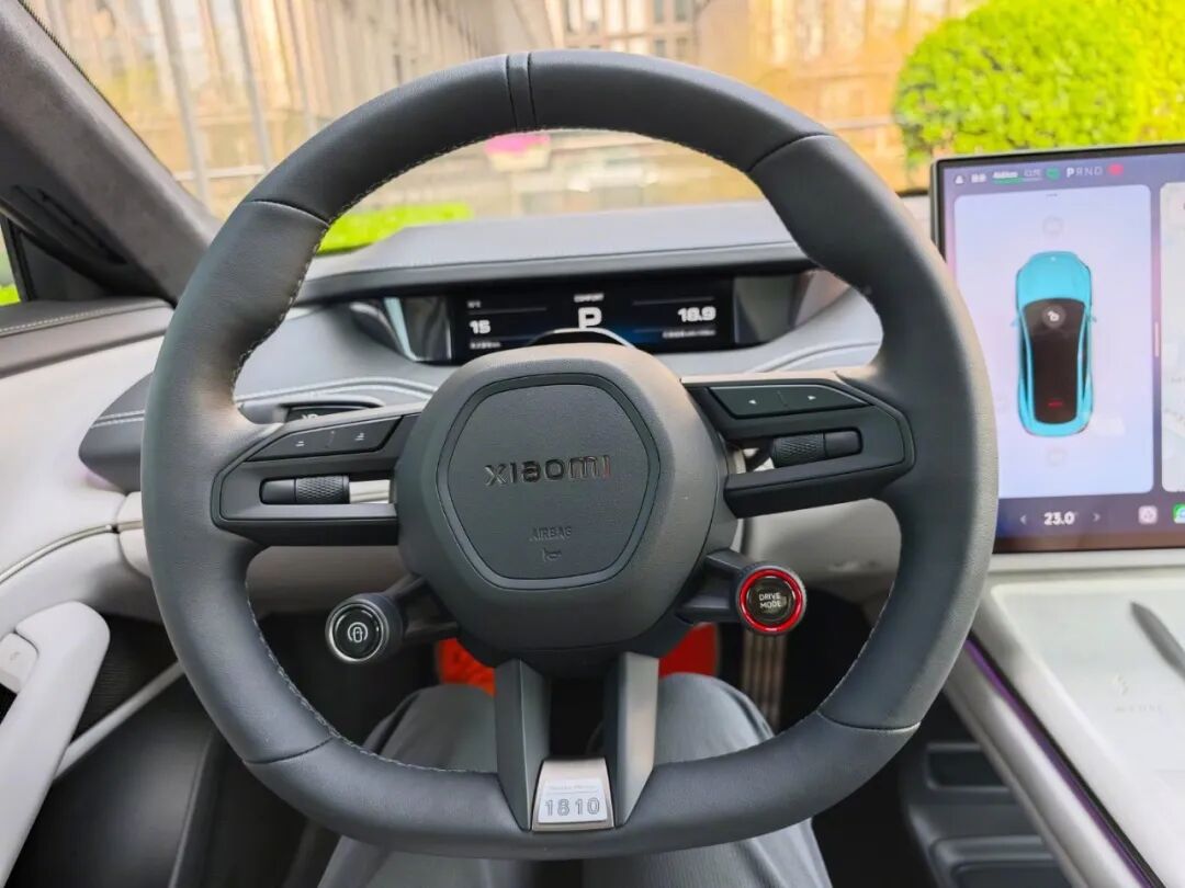 附上网友某天拍摄的雷军路透图(此处应该是拍摄后视镜画面,所以出现了镜像,实际为左舵)。小米汽车提供多个配色,如果是你选,车漆颜色和内饰会怎么组合?