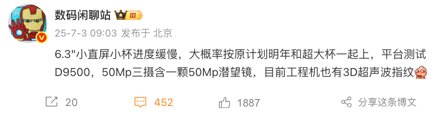 据了解按照节奏,OPPO下半年将更新Find X9系列,首批搭载联发科天玑9500处理器,不过今年下半年主要是Find X9和Find X9 Pro两款,一个6.59英寸的中屏方案的标准版,一个常规尺寸的Pro版,Ultra超大杯和小尺寸小屏预计次年发布。