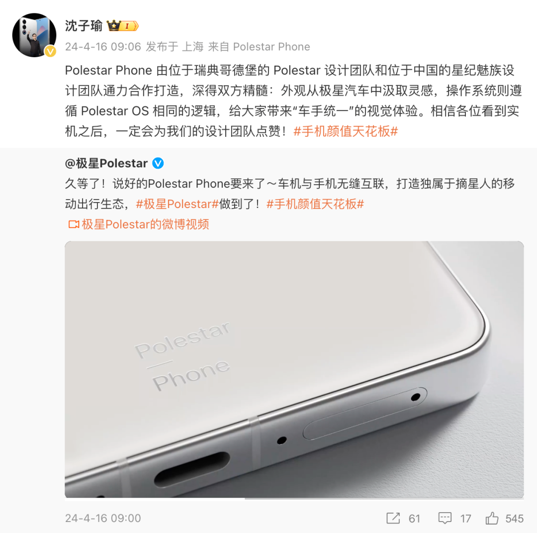 据预热,极星手机Polestar Phone主打「实现车手互联生态的AI旗舰手机」,由Polestar设计团队和星纪魅族设计团队通力合作打造,操作系统遵循Polestar OS相同的逻辑,将带来“车手统一”的视觉体验;