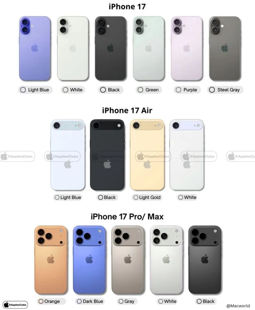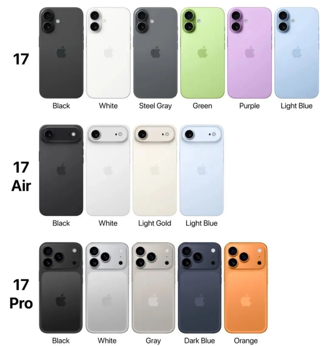 取代原先的Plus型号,主打超薄设计)、17 Pro、17 Pro Max四款型号,最近关于配色有不少爆料。