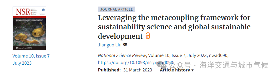 由刘建国教授撰写,傅伯杰院士邀稿,发表于国家科学评论()NSR的论文总结了元耦合框架在可持续发展科学中的应用。传统的可持续发展研究通常局限于特定地点,而元耦合框架提供了一种整合不同地点内部、邻近地点和遥远地点人与自然相互作用的方法。该框架的应用展示了其在推动可持续科学方面的广泛应用,并对全球可持续发展产生深远影响。这是第二部分