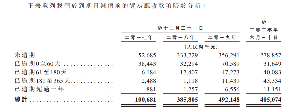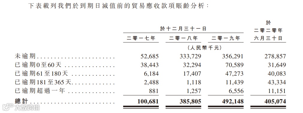 同时,应收账款也不一定能100%的收回,按下表来看,有30%的应收已经逾期。