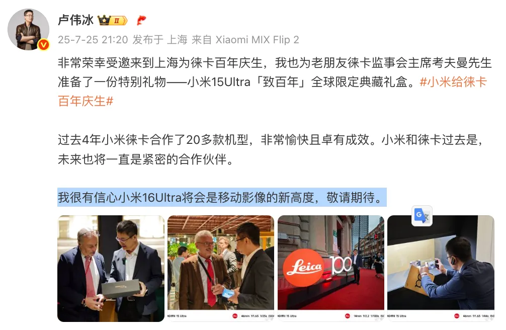 小米手机部总裁卢伟冰还曾表示「很有信心小米16 Ultra将是移动影像新高度」。大家对小米16 Ultra有什么期待吗?