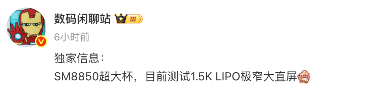 据爆料达人数码闲聊站暗示:Find X9 Ultra目前正在测试1.5K LIPO极窄大直屏。不知道最终落地方案是否也是如此。作为补充,Find X9、X9 Pro、X9s爆料也是1.5K屏,如果X9 Ultra量产版也是1.5K的话,那就是全系1.5K屏?🤔