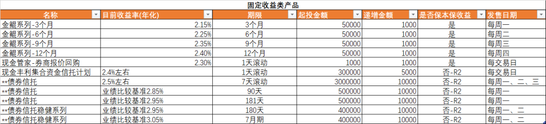 四、下周固定收益产品收益情况