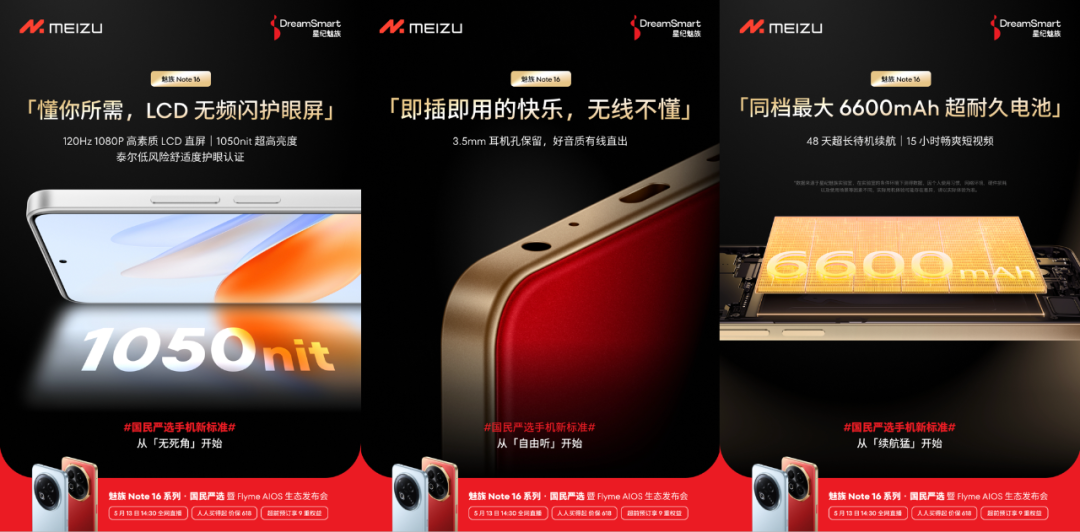 Note 16系列暨Flyme AIOS生态发布会,这几日官方预热了更多配置,给大家简单整理下~