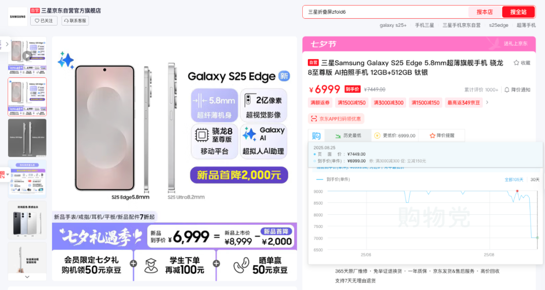 现据最新消息,三星S25 Edge在电商平台已经开启促销。