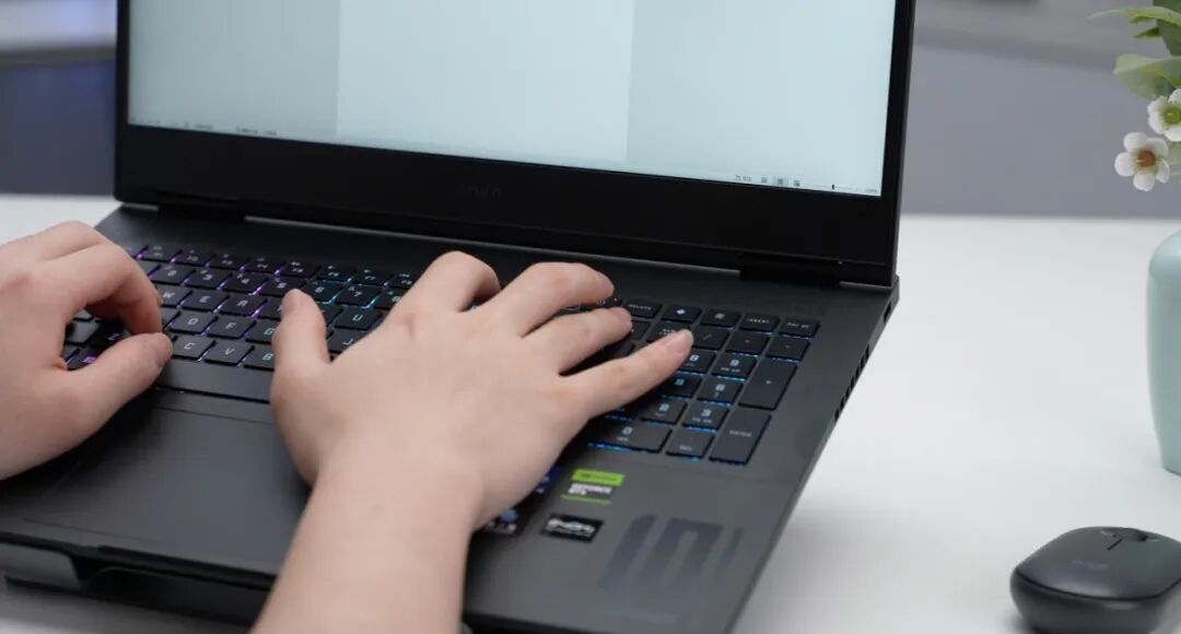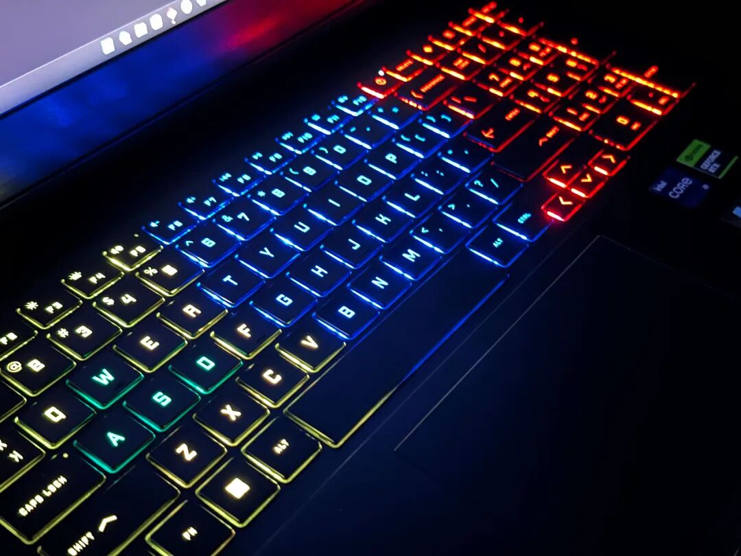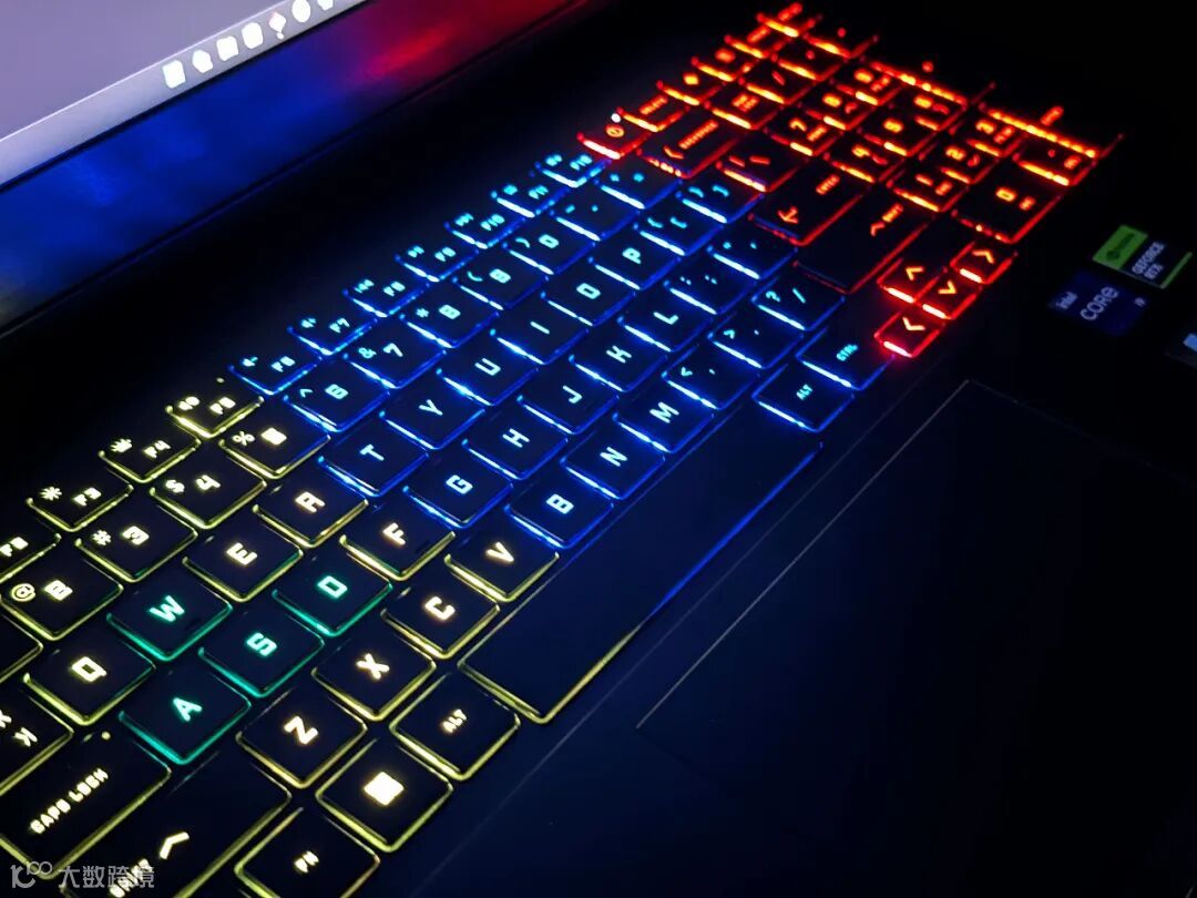 C面为金属材质,搭配标准的键盘尺寸,方向键和数字按键一应俱全,对游戏玩家来说,不管是游戏过程还是输入账号都方便不少。但这里小伙伴要注意一点,低配的i7+4060版是没有数字键的。键盘上是4分区RGB背光,WASD按键做了颜色区分,哪怕是在黑暗中也能一眼找到想要的键位,提高按键速度;且键程适中,不易产生误触,回弹也较为舒适,整体敲击使用体验很可。
