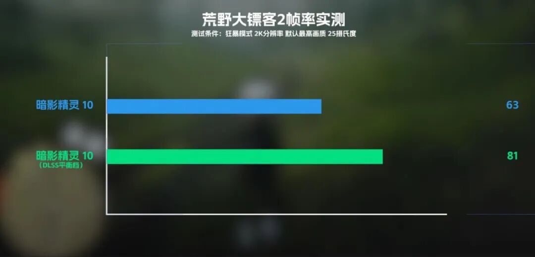 《荒野大镖客2》2K最高画质,不开启DLSS平均63,开启DLSS后,平均81帧。