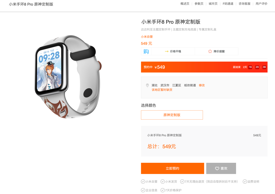 据小米商城和京东等平台显示,小米手环8 Pro原神定制版将于12月22日上午10点再次开售,价格依然是549元,感兴趣的小伙伴可以蹲一波~