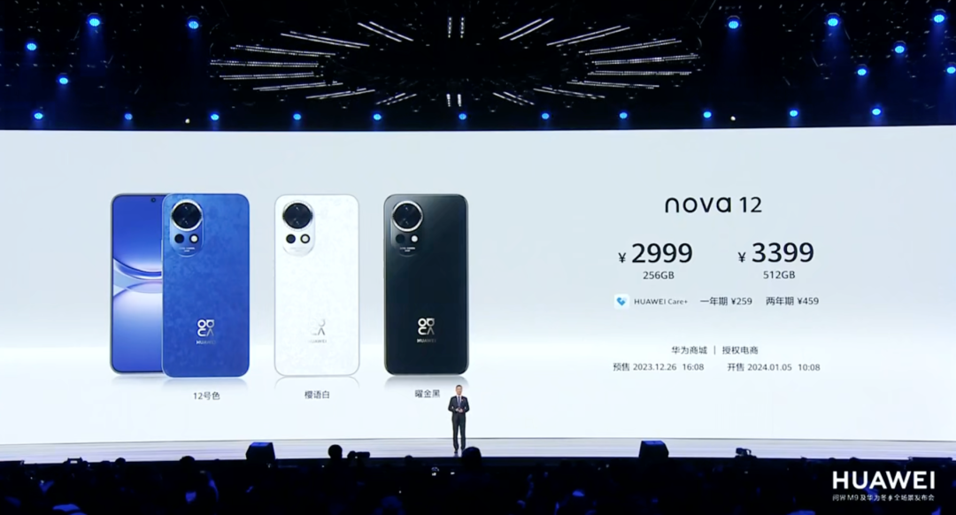 价格上,华为nova 12标准版:8+256GB版售价2999元,8+512GB版售价3399元,目前已开启全款预售(官网暂时需等待到货通知),将于1月5日10:08正式开售。