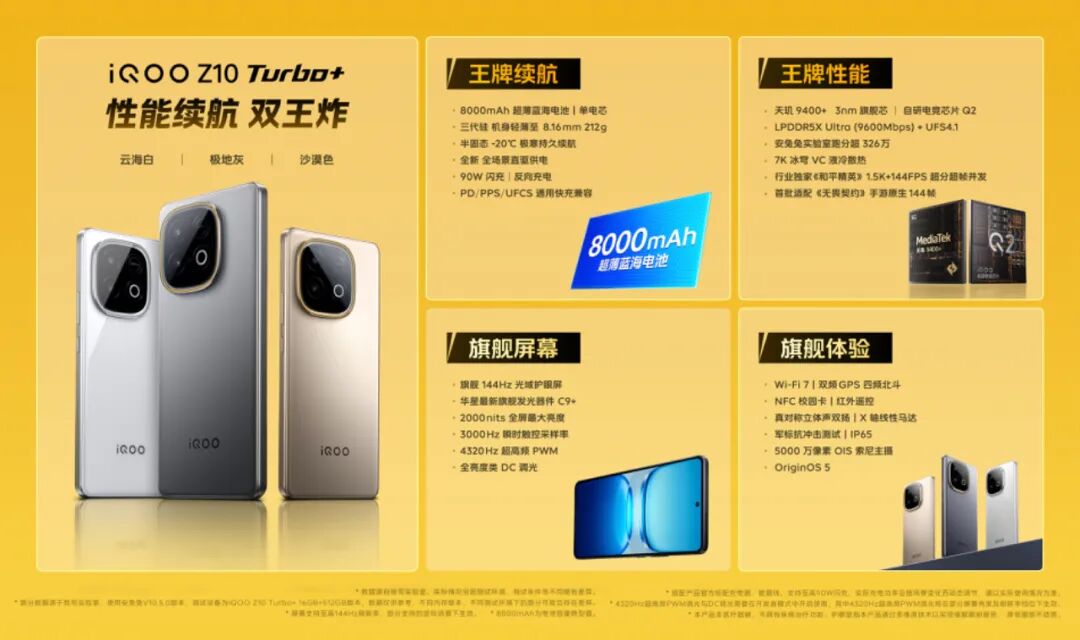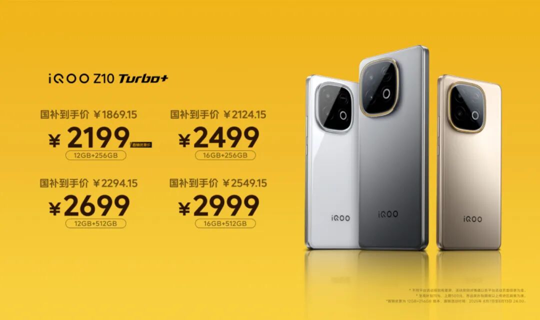 价格上,iQOO Z10 Turbo+:12+256GB版首销价2199元,16+256GB版2499元,12+512GB版2699元,16+512GB版2999元,如果所在地区有国补参与预计到手价1869.15元起,大家觉得这价格如何?