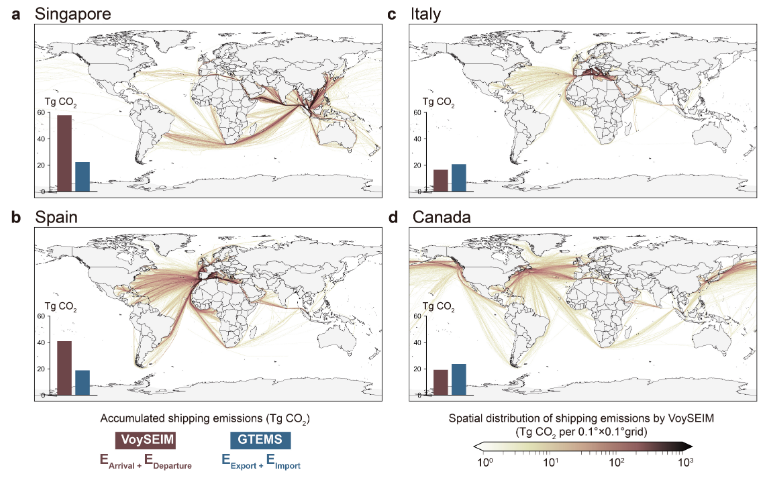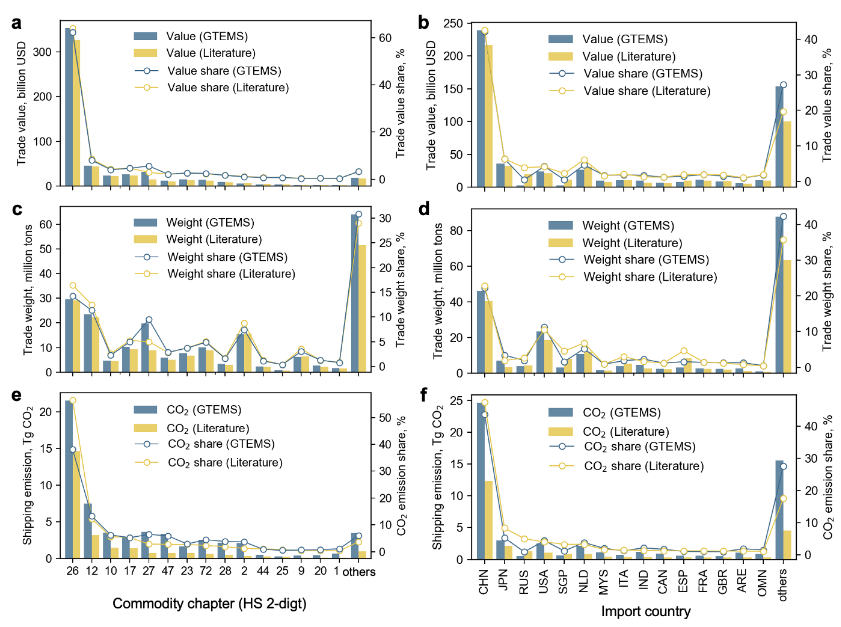GTEMS模型成功地在国家层面解释了与贸易关联的航运排放,克服了AIS模型中转运难题和无载航程的不确定性(补充图3)。