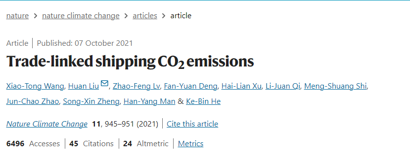 导语:本次推送的是刘欢团队的第四项研究成果,发表在《自然气候变化》(Nature Climate Change),这也是博主最喜欢的一篇论文。该文通过构建了VoySEIM–GTEMS复合模型链,以创新的视角将全球航运排放分解为细化的贸易关联排放流,探究了国家对和贸易商品的碳排放贡献,并展示了贸易结构优化对于航运减排的巨大潜力。