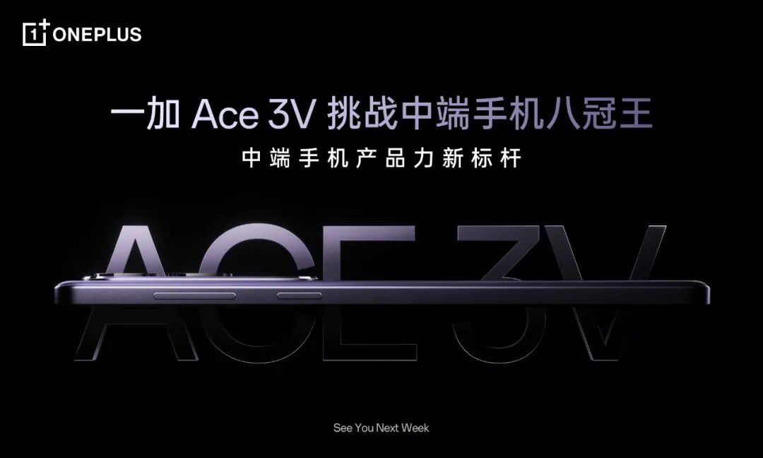 具体参数上,一加Ace3V采用1.5K分辨率的居中单挖孔直屏,120Hz刷新率,天马U8+发光材料,2160Hz PWM调光,局部峰值亮度2150nit,雨水触控;首发骁龙7+ Gen3处理器,LPDDR5X、UFS 4.0,9140mm² 万级散热VC,5500mAh电池、100W有线充电;索尼5000万像素主摄有OIS光学防抖;配备双黄金游戏天线、游戏云计算专网、NFC、红外遥控,旗舰同款AI能力(AIGC消除、小布问答、论文助手等)等等。