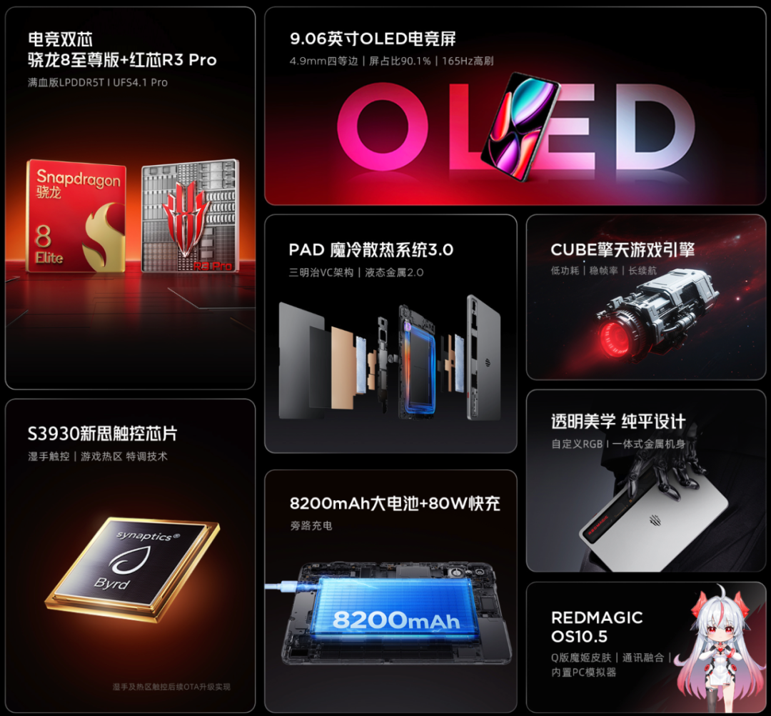 另外是红魔这边的消息。昨晚红魔发布了自家的小尺寸电竞平板——红魔电竞平板3 Pro,来简单汇总下配置价格~