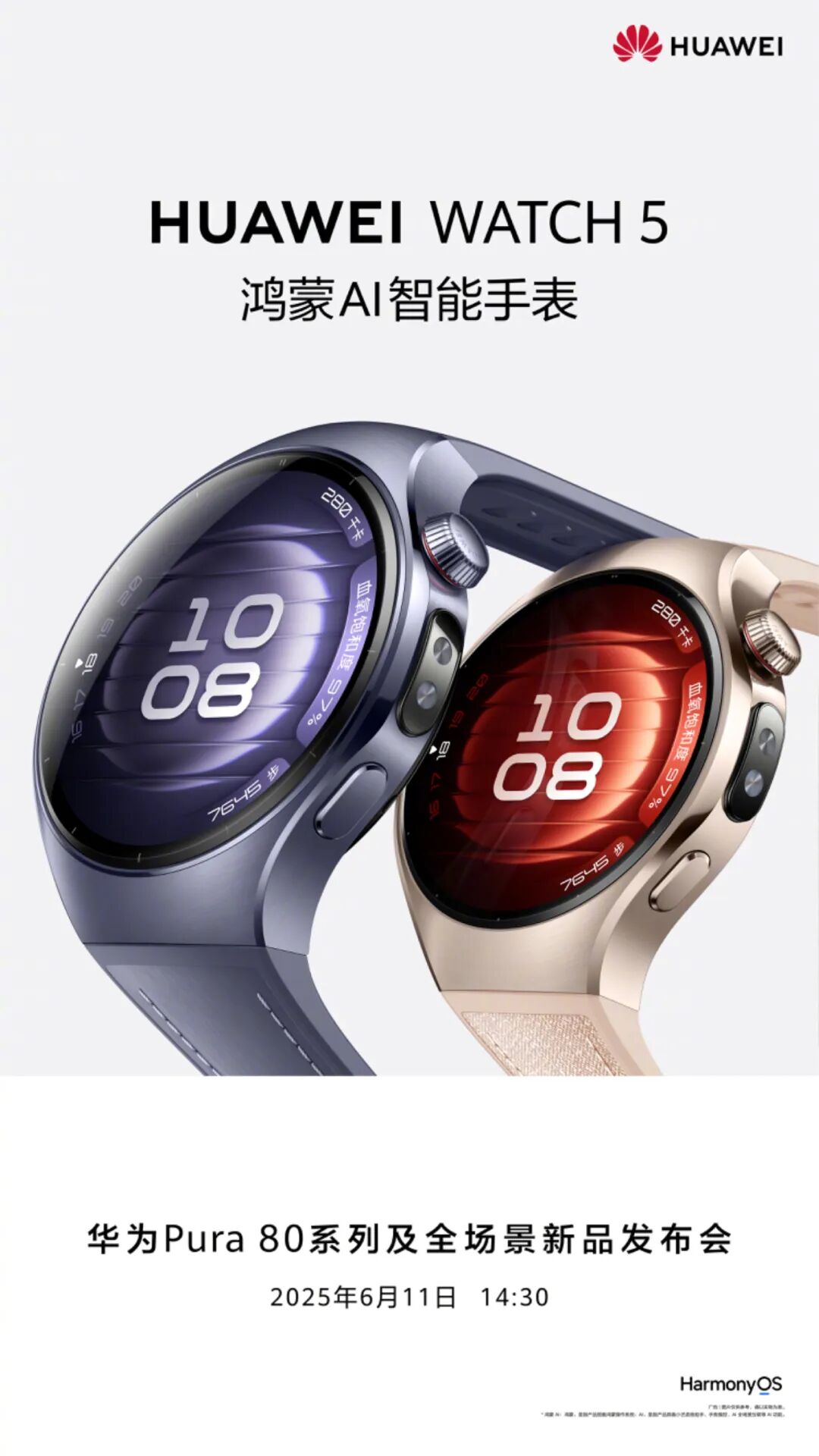 今天上午,华为Pura 80系列及全场景新品发布会官宣将于6月11日14:30举行,据预热除了Pura 80系列新手机外,本次发布会还将带来全新WATCH 5智能手表。