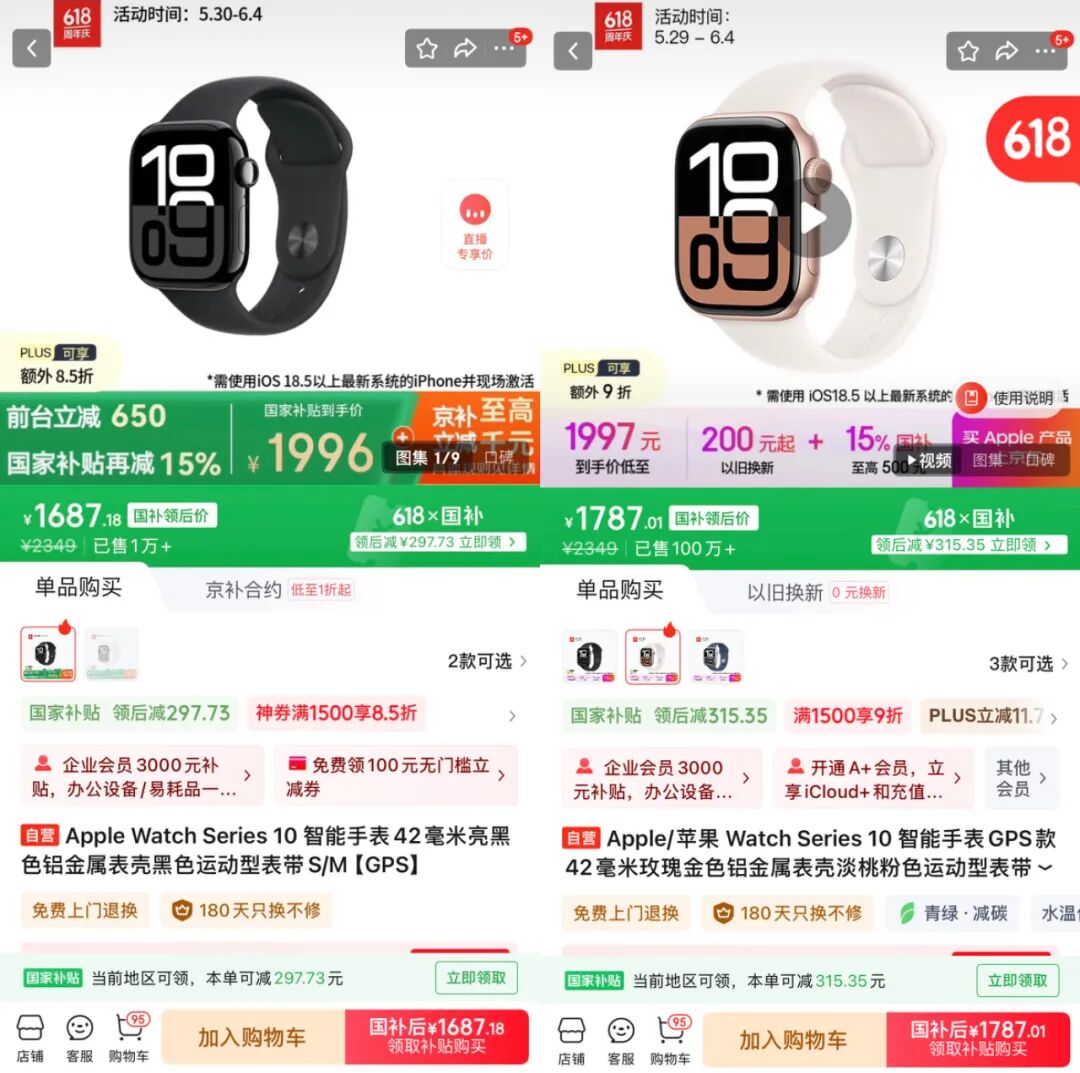 【618】AppleWatchS10价格新低 1687元起你会考虑吗